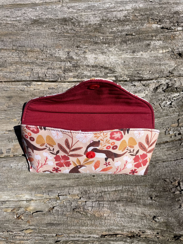 Semi-rigide, confectionné avec un tissu à motifs devant et un coton uni à l'intérieur.