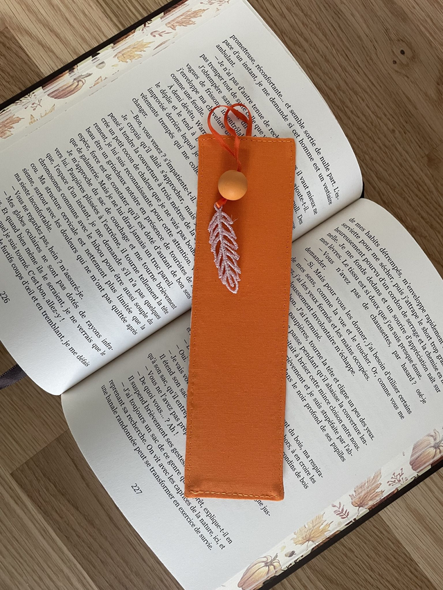 Sur le dessus il y a un ruban avec une perle et une plume brodée.