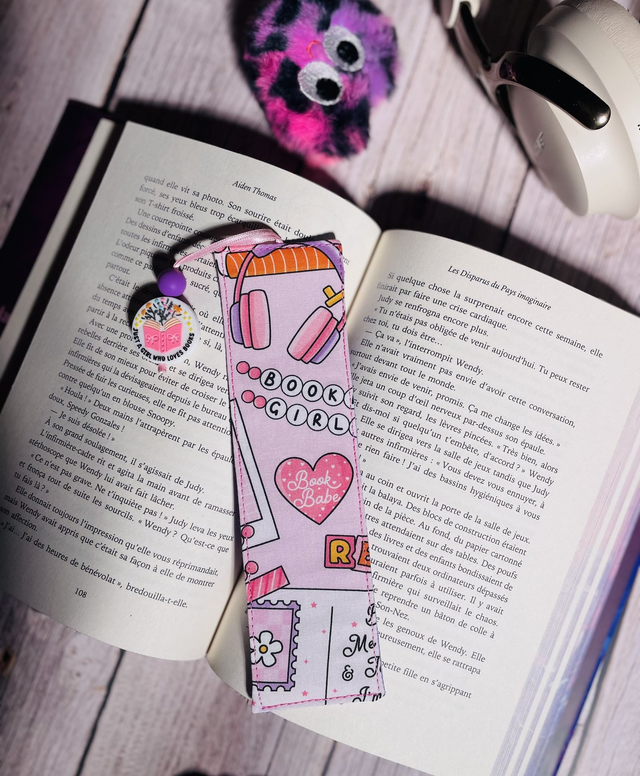 Ajoutez une touche de douceur à vos lectures avec ce marque-page en tissu entièrement fait main.