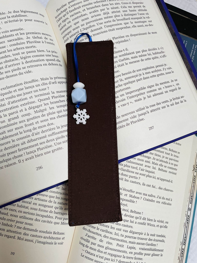 Ajoutez une touche de douceur à vos lectures avec ce marque-page en tissu entièrement fait main.
